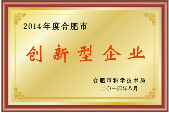 | 我公司榮獲“2014年合肥市創(chuàng)新型企業(yè)”榮譽(yù)稱(chēng)號(hào) |