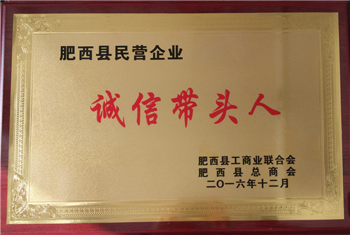 喜訊:我司榮獲肥西縣民營企業“誠信帶頭人”稱號