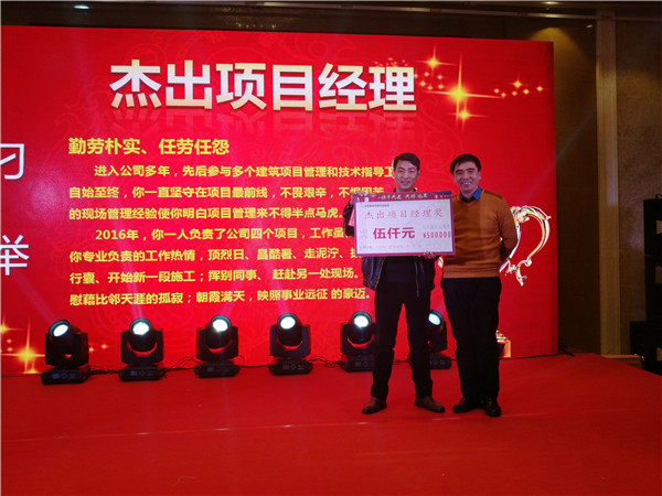 ▲副總經(jīng)理孔德雨頒發(fā)杰出項(xiàng)目經(jīng)理獎(jiǎng)