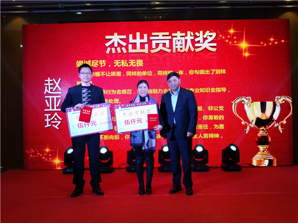 ▲常務(wù)副總朱曉莉女士頒發(fā)優(yōu)秀員工獎(jiǎng)、生產(chǎn)標(biāo)兵獎(jiǎng)、勤懇奉獻(xiàn)獎(jiǎng)