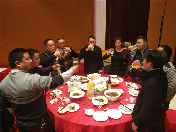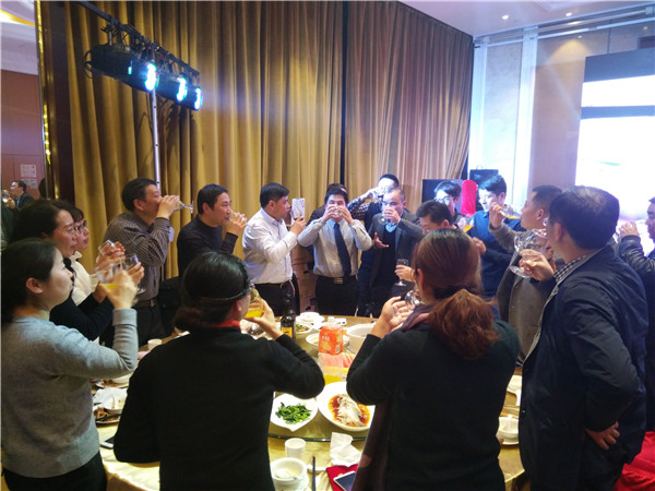 迎春燈火煌,歌聲多嘹亮,歡聚共一堂。頒獎(jiǎng)環(huán)節(jié)結(jié)束后,2017安徽嘉偉節(jié)能科技集團(tuán)迎春晚宴正式開(kāi)始。孔董向全體員工祝酒,感謝他們一年來(lái)的辛苦付出。晚宴飯桌座無(wú)虛席,暖意融融,流淌著滿滿的喜氣。
