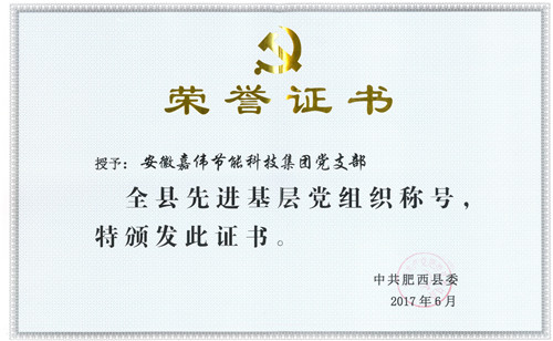 此前,在2016年舉辦的紀念建黨95周年暨“七·一”表彰大會上,我司黨支部曾被評為桃花工業園“先進基層黨組織”,‘雙強六好’非公企業黨組織”,黨支部書記李剛被評為2015年“優秀黨務工作者”。在2016年底,又被評為肥西縣“2016年度縣級雙強六好”非公企業黨組織。