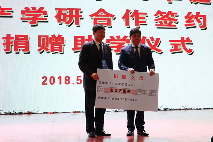 ​安徽嘉偉節(jié)能科技集團慷慨捐資100萬元支持安徽建筑大學研發(fā)綠色、超靜音科技門窗