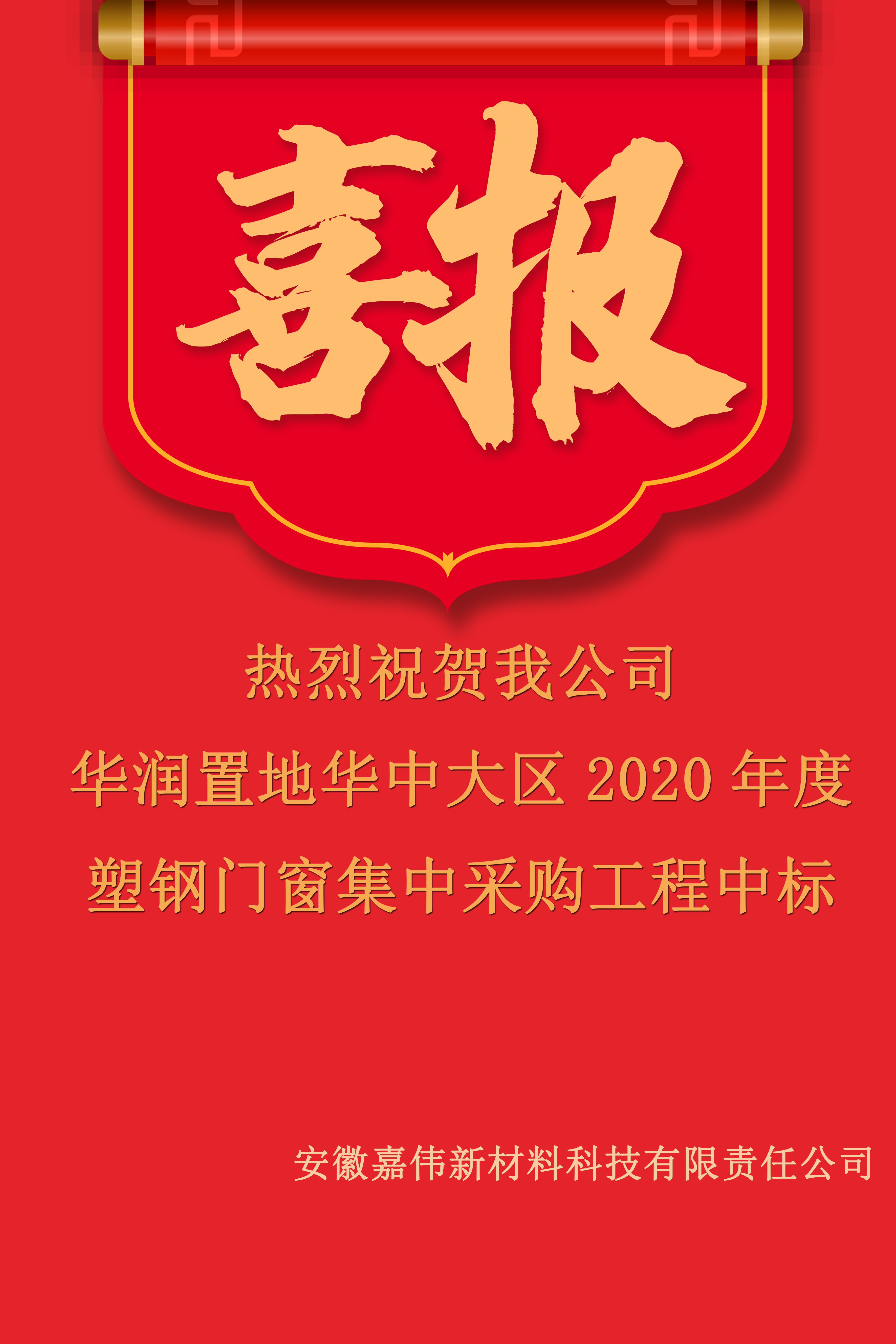 喜報|熱烈祝賀我公司華潤置地華中大區2020年度塑鋼門窗集中采購工程中標!