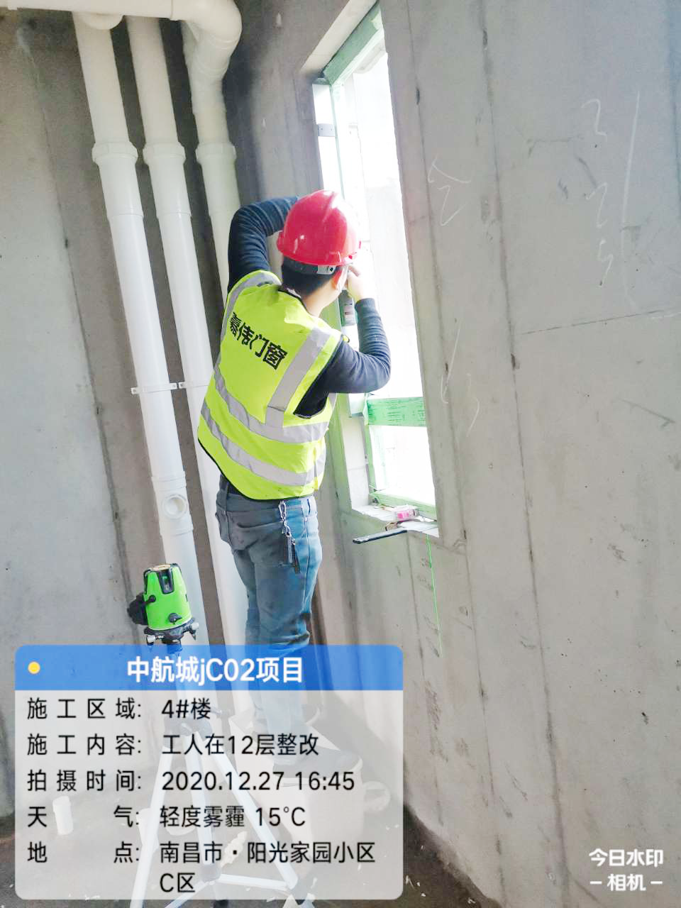 南方天氣是濕冷的,雖然穿的比較多,但是在項目現場時間待久了,依然感覺非常寒冷。安裝工人好似“不怕冷”一般,他們手持瓦斯槍、手電鉆、水平儀、靠尺等專業安裝及測量工具,擼起袖子在嚴寒下揮汗如雨的工作著。量之以分毫、察之以規范,他們嚴格按照《安徽嘉偉新材料科技有限責任公司門窗安裝工藝標準》進行著門窗安裝工作。