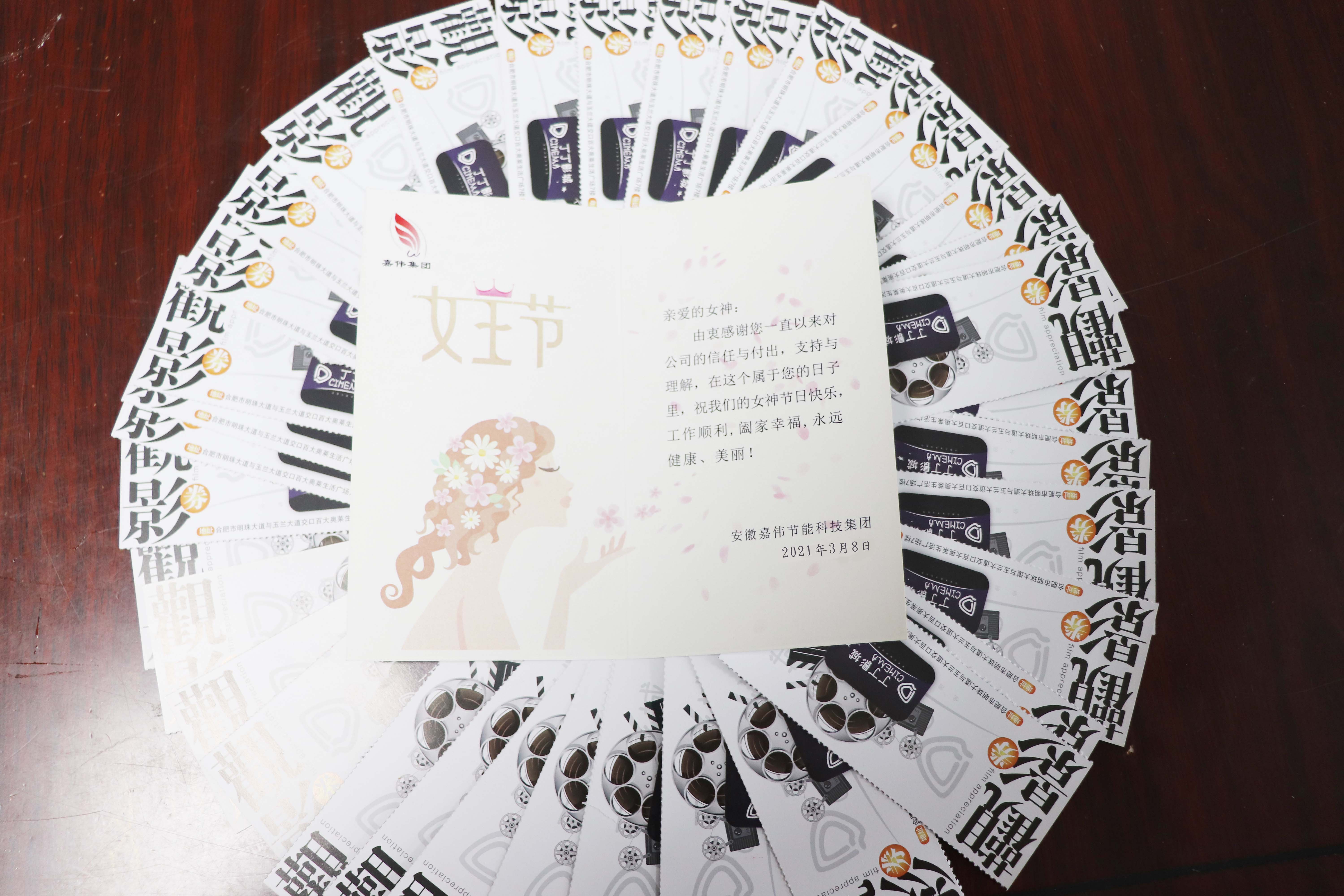 左手工作,右手生活,可以天生麗質(zhì),也可以天生勵(lì)志!世界因你們而美麗,生命因你們而完美。安徽嘉偉新材料科技有限責(zé)任公司為每一位“女神”準(zhǔn)備了三八節(jié)禮物(觀影券),希望你們?cè)诠ぷ鞯耐瑫r(shí)也可以盡情的享受生活!