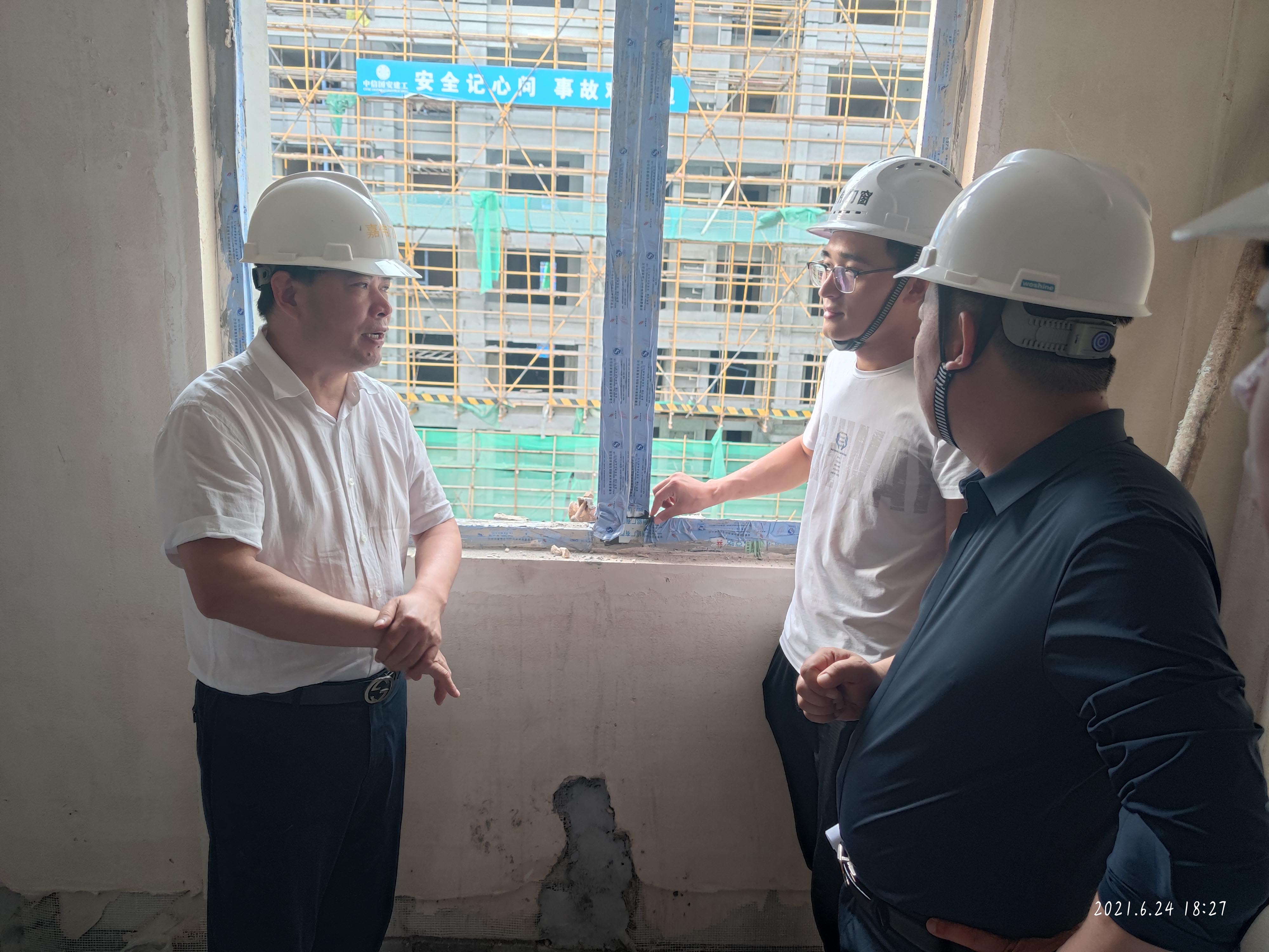 孔董事長在現場負責人的帶領下,先后對阜陽保利潁州堂悅、阜陽華潤中心四期等項目進行了實地考察。他還走進施工樓棟,對各樓層施工情況逐層檢查,對門窗安裝的工藝細節進行指導改進。現場負責人就項目概況、施工質量、施工進度及安全文明施工情況向孔董做了詳細匯報并表示將嚴格遵照公司《門窗安裝工藝手冊》、遵守甲方各項要求、嚴控質量安全,全面保障項目高效進展。在現場孔董還對項目部反應的施工痛點難點給予了協調解決,切實提高了項目現場辦事效率。