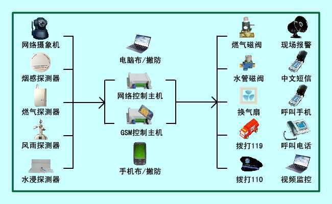 家庭消防與安防系統(tǒng)是經(jīng)過專門設(shè)計(jì)的獨(dú)立系統(tǒng),如何與智能家居融合,是今后的一個(gè)方向。傳統(tǒng)安防系統(tǒng)案例: