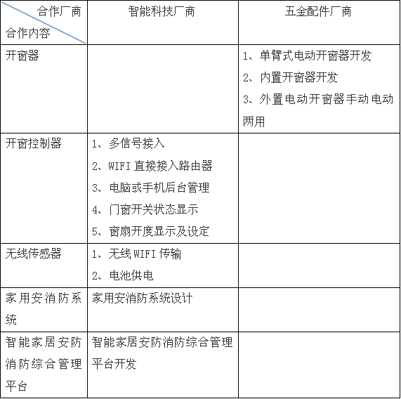 五、智能門窗開發(fā)合作對(duì)象及合作內(nèi)容